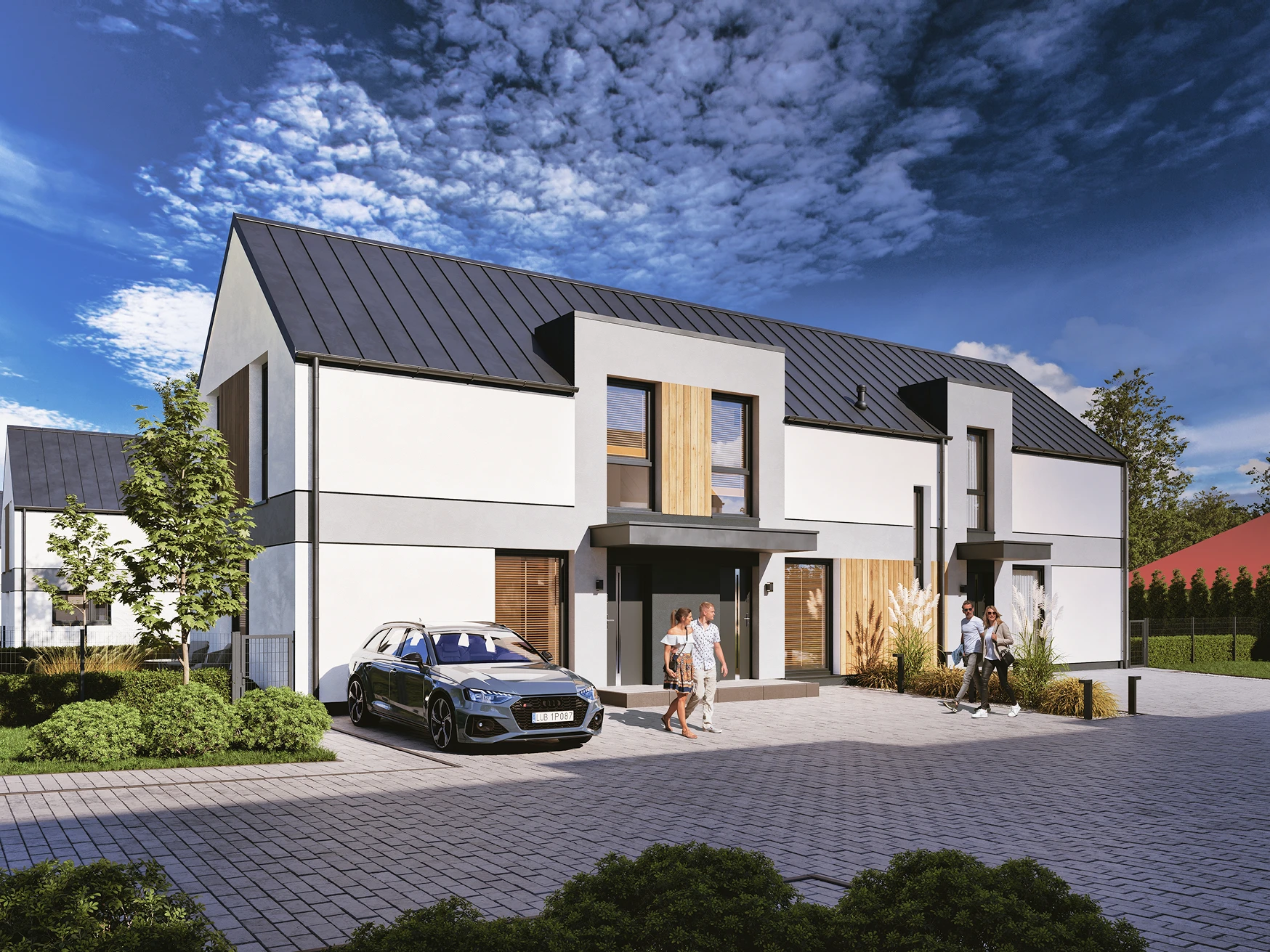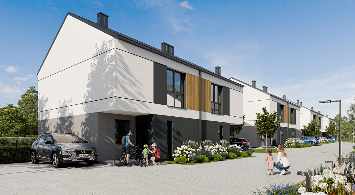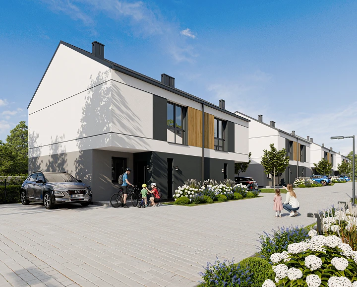 Inwestycja obejmowała realizację 4 domów jednorodzinnych w zabudowie bliźniaczej. Przemyślana architektura i funkcjonalny układ wnętrz sprawiają, że domy idealnie odpowiadają na potrzeby rodzin. Spokojna okolica i estetyczne zagospodarowanie terenu podkreślają kameralny charakter.