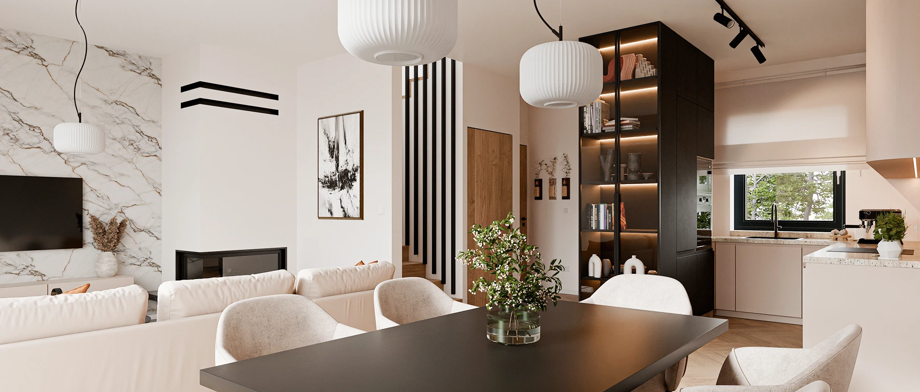 Dom jednorodzinny zrealizowany na zlecenie Klienta indywidualnego, położony w spokojnej lokalizacji pod Lublinem. Budynek został wykonany zgodnie z oczekiwaniami inwestora, z naciskiem na funkcjonalności, wygodę oraz nowoczesny wygląd. Projekt uwzględnia przestronny układ pomieszczeń oraz starannie zaprojektowaną działkę.